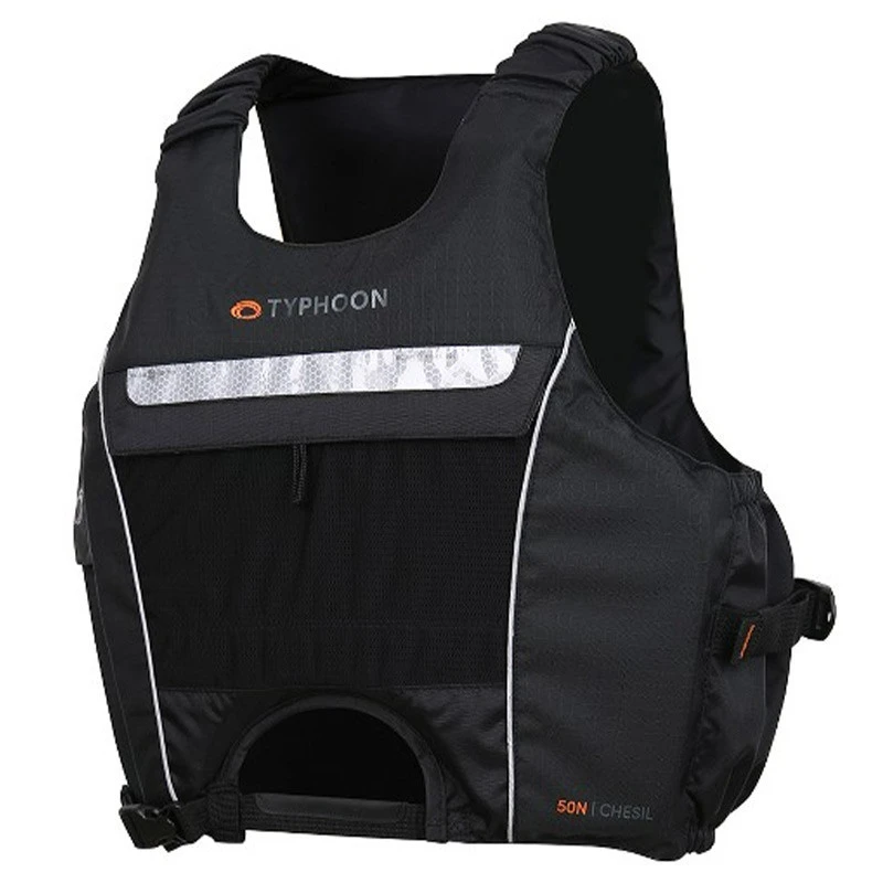 Le gilet Typhoon High Hook est extrêmement facile à enfiler grâce à sa fermeture latérale zippé. Un rabat velcro empêche le zip de redescendre. Le serrage du gilet se fait par deux sangles sur le coté. Une grande poche filet fermé par un rabat velcro est positionné sur l’avant du gilet.