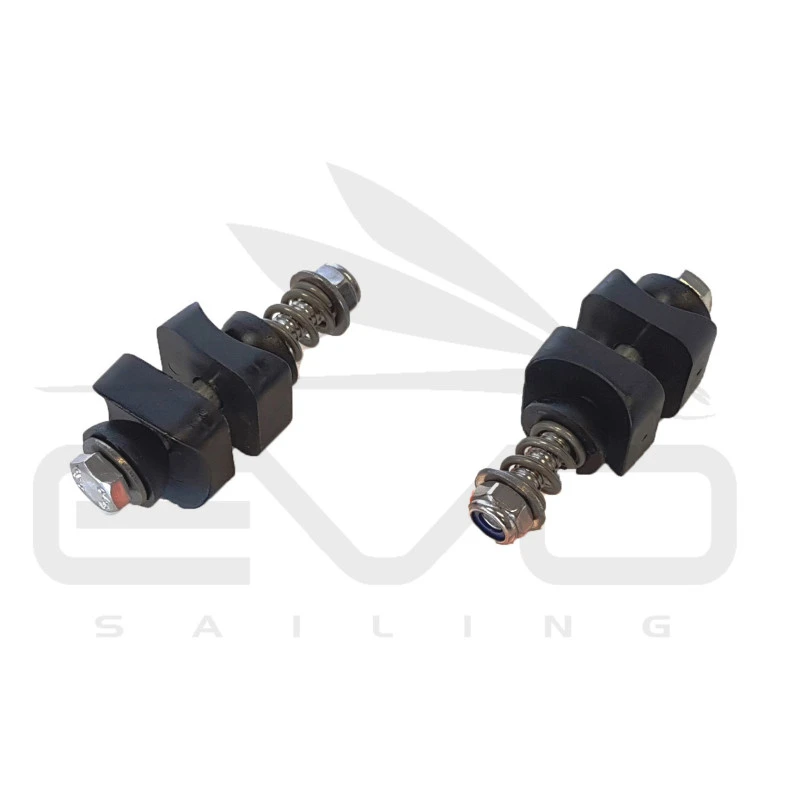 Le kit d’articulation TCM pour catamaran Hobie Cat permet de faire la liaison entre la barre d’accouplement qui relie les deux safrans au tube de gouvernail de chaque safran. Le kit se fixe sur les embouts à rotule
