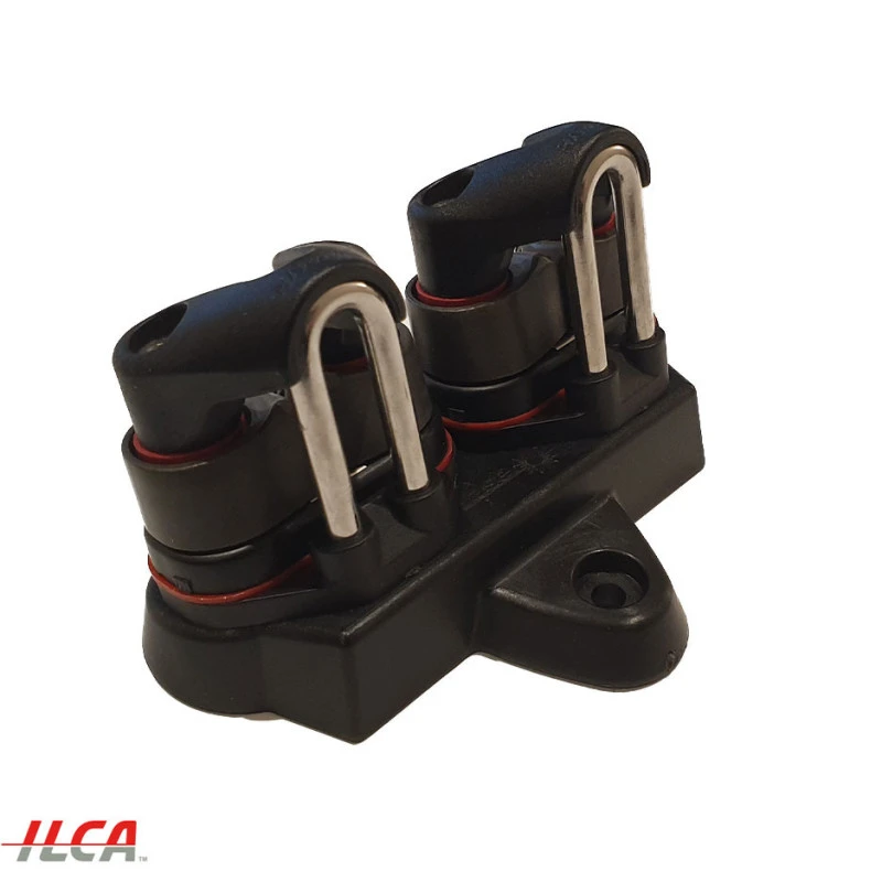 La platine avec taquet Harken machoire en aluminium est la pièce vissé sur le pont du dériveur Laser & ILCA. Cette platine sert au contrôle des bouts de bordure et de cunningham. Cette version dispose des taquets à machoires en Aluminium plus résistantes que celles en composite. Matériel homologué pour les régates de classe ILCA.