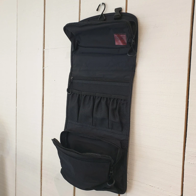 Trousse de toilette pliable avec crochet. La trousse de toilette Magic Marine se compose de 3 compartiments pour organiser vos articles de toilette et produits cosmétiques. Le crochet permet de suspendre la trousse dans la salle de bain ou le vestiaire et d’avoir tout vos articles sous la main.